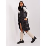 Black long vest with hood SUBLEVEL. Product code: D50048X80114A1Dominant pattern: plainStyle: Casualoccasion: everyday, for work, for a walk, for the city The model is wearing a size S. Model's measurements: height 173 cm, bust 89 cm, waist 65 cm, hips 91 cm. Dimensions of the vest in size S measured flat: width under the armpits 55 cm, total length 101 cm.