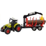 Tractor and forest trailer with woodWe offer a set of a tractor with a forestry trailer and a crane for an enthusiast of agriculture or forestry. A precisely made set with a forest trailer for transporting logs included in the set. The model reflecting the vehicle is not only a unique toy, but also an enrichment of many interesting collections. On the trailer there are 3 logs of trees that can be pulled out.Main features of the set with a forestry trailer: light effects three sound effects careful and solid workmanship rotating (360 ) crane retractable supports moving partsDimensions of the set elements: tractor: 14.5 cm x 8.5 cm x 9 cm trailer: 19 cm x 8 cm x 11.5 cm tree logs: 13.5 cm x 2 cm crane: length 16 cmBox dimensions:39 cm x 15 cm x 11 cmThe set is powered by three "AG13" 1.5 V batteries (included). The tractor is intended for children over 3 years of age. The set has a CE certificate and complies with the EN 71 standard. It is packed in a box with a glasscase, making it perfect for a gift.