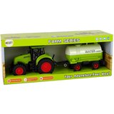 Tractor With Big Wheel Trailer Green FarmIt is a dynamic toy that invites children to agricultural adventures and creative play. The set offers a lot of possibilities, creating dynamic and engaging entertainment.The tractor is equipped with a trailer that can be hitched or unhitched. Thanks to this, children can also use the vehicle individually. In this way, a variety of fun scenarios open up to them.The dimensions of the tractor are: 18 cm x 11 cm x 9.5 cm, which makes it ideal for toddlers.Its large wheels add authenticity and stability while driving, and the realistic appearance makes your children feel like real farmers, discovering the charms of rural life.Moving elements in the trailer are an additional advantage of this toy. Its dimensions are: 22 cm x 11 cm x 8.5 cm.The traction drive of the tractor is a sensational element that enables easy and dynamic movement. In addition, it is batterypowered, which makes it light up and make a sound.The whole toy is made of durable plastic, which guarantees its durability and resistance to intense play. It's not just a toy, it's a journey into a farming world full of action and adventure that inspires and entertains. It is the perfect gift for lovers of country life!Tractor dimensions:18 cm x 11 cm x 9,5 cmTrailer dimensions:22 cm x 11 cm x 8,5 cmSize of the package:43 cm x 17 cm x 13 cmIt is CE certified and complies with the EN71 standard. The toy is intended for children over 3 years of age.