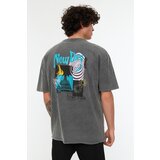 Trendyol Anthracite Men's Relaxed Fit Cycling Collar Short Sleeve Acid Wash Printed T-Shirt cijene