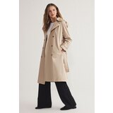 Ženski kaput dugi rukav zakrivljeni ovratnik pojas 2 bočna džepa kopčanje gumbimaDimenzije modela: visina: 176 prsa: 84 struk: 60 bokovi: 89Veličina proizvoda na modelu: S / 36Materijal: 100% poliester