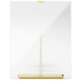 Okvir Flute marke Umbra je elegantan samostojeći okvir koji će savršeno upotpuniti vaš interijer. Zahvaljujući svom dizajnu, omogućuje vam izlaganje fotografija u portretnoj i pejzažnoj orijentaciji. Izrađen je od stakla s izraženom rebrastom završnom obradom koja mu daje elegantan izgled. Donja baza i gornja ručka izrađene su od metala, a svaki metalni dio je ručno poliran. To osigurava da svaki okvir ima svoj jedinstveni karakter i sjaj. Zbog ručne izrade, mogu postojati male varijacije u završnoj obradi.