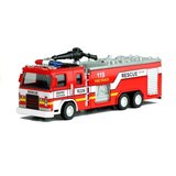 Sanja li vaš sin da u budućnosti postane vatrogasac? Ili je možda vaša kći impresionirana ogromnim vatrogasnim vozilima i rizičnim radom hrabrih ljudi? S predstavljenom igračkom pružit ćete svom djetetu odličnu zabavu, dajući mu priliku da se osjeća kao hrabri vozač i pravi krotitelj vatre! Predstavljena vatrogasna vozila izrađena su u mjerilu 1:32 . Njihova veličina omogućuje točnu reprodukciju pravog vatrogasnog vozila, kao i označavanje najvažnijih elemenata njegove opreme. Slova, plava svjetla i detalji poput slova tipičnih za ovu vrstu vozila ukazuju na mnoge sličnosti sa stvarnim strojevima. Autići su izrađeni od visokokvalitetnog materijala, što jamči dugi vijek trajanja igračke , kao i čvrstoću i zadovoljstvo korištenja. Gumeni kotači vozila su rotirajući, što omogućuje zabavnu igru na raznim površinama, dok su glavni elementi opreme, poput vodenog topa ili ljestava, pokretni . Igračka vatrogasca namijenjena je djeci koja su navršila 3 godine . Ovo je idealna opcija ne samo za svakodnevnu zabavu s vršnjacima, već i kao diverzifikacija kolekcije raznih vozila. Uvjereni smo da će vatrogasna vozila zadovoljiti i najzahtjevnijeg mališana. Igračke su pakirane u estetske kutije s vitrinama. Dimenzije automobila : 16,5 cm x 4,5 cm x 6,5 cm. Dimenzije pakiranja : 19 cm x 7 cm x 8,5 cm.