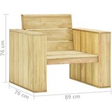 Ova vrtna garnitura idealan je izbor za opuštanje i uživanje u vremenu, drijemanje ili čavrljanje s obitelji ili prijateljima. Napravljena od impregnirane borovine, ovaj vanjska garnitura izdržljiva je, otporna na vremenske utjecaje i ekološki prihvatljiva. Ovaj set namještaja ima čvrstu konstrukciju i zahtijeva malo održavanja. Zahvaljujući presvlaci od 100 % poliestera i debeloj podstavi, uključeni jastuci mekani su i pružaju najveću udobnost. Napomena: Kako biste produžili vijek trajanja svog vanjskog namještaja, preporučujemo vam da ga redovito čistite i ne ostavljate ga nepotrebno na otvorenom bez zaštite.Čišćenje: Upotrijebite blagu otopinu sapuna.Spremanje: Ako je moguće, čuvajte na hladnom i suhom mjestu u zatvorenom. Ako se proizvod čuva na otvorenom, zaštitite ga vodootpornom navlakom. Obrišite i osušite višak vode ili snijega s ravnih površina nakon kiše ili snijega. Omogućite dovoljnu cirkulaciju zraka kako biste izbjegli oštećenja od vlage.