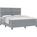 Ovaj box spring krevet spaja stil s praktičnošću. Pruža ti udobno mjesto za spavanje. Svjetlosiva tkanina i čvrste drvene noge unapređuju cjelokupni izgled i dugotrajnost.