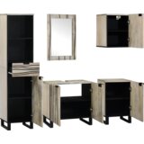 Ovaj rustikalni set za dnevni boravak savršen je dodatak svakom domu, donoseći robusnu ljepotu i praktičnost. Uključuje umivaonski ormarić, ormarić s ogledalom, veliki kupaonski ormarić, mali kupaonski ormarić i zidni ormarić, a svi zajedno mogu tvoj prostor pretvoriti u organiziranu oazu. Kombinacija rustikalnog šarma i praktične pohrane daje mu ugodan osjećaj koji podiže svaki dnevni boravak. Bilo da ga koristiš pojedinačno ili u kompletu, set nudi prekrasan izgled i uredan prostor, zadovoljavajući svakodnevne potrebe.