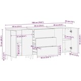 Ovaj set kupaonskog namještaja savršeno balansira stil i funkcionalnost, čineći ga upečatljivim komadom u svakom modernom prostoru. Njegov elegantan izgled s čistim linijama i sjajnom završnom obradom dodaje šarm svakoj prostoriji. Napravljen od masivnog drveta manga, ima prirodnu vibru koja se savršeno uklapa u suvremeni stil. S dovoljno prostora za pohranu, idealan je za kućne i radne prostore, pomažući da sve bude uredno i organizirano uz malo sofisticiranosti.