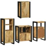 Ovaj set drvenog kupaonskog namještaja kombinira bezvremenski rustikalni šarm s modernim dizajnom, što ga čini glavnim komadom u svakoj kupaonici. Njegova prirodna ljepota uklapa se u različite stilove dok nudi praktično i dovoljno mjesta za stvari. Izrađen za dobar izgled i funkcionalnost, savršen je za one koji vole sirovu, zemljanu vibru, i trebaju mjesto za sve dobro organizirati. Topli smeđi i odvažni crni tonovi stvaraju ugodnu atmosferu, idealnu za osvježavanje tvog prostora.