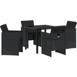 Ovaj set vrtne blagovaonice od 5 dijelova spaja moderan stil s kvalitetnom izradom, čineći ga super izborom za tvoj vanjski prostor. Ima čvrst kvadratni stol i četiri udobne stolice, sve obučene u jastučiće otporne na vremenske uvjete, podižući izgled tvog balkona ili vrta i pružajući ti lijepo mjesto za jela ili samo opuštanje.