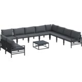 Ovaj set vanjskog namještaja s jastučićima nudi opuštajući kutak za uživanje na svježem zraku. Bilo da zabavljate goste ili jednostavno uživate na suncu, ovaj set se ponosi modernim i stiliziranim estetskim izgledom koji upotpunjava svaki vanjski ambijent svojim mekim jastučićima i elegantnim dizajnom.