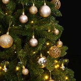 Ovo umjetno božićno drvce na šarkama s LED žaruljama, koje dolazi s prekrasnim blagdanskim ukrasima, privlačit će poglede navečer i stvoriti pravu atmosferu za ovaj Božić. Konstrukcija sa šarkama: Ovo božićno drvce ima konstrukciju sa šarkama, tako da će se grane automatski sklopiti prema dolje pod pravim kutom. To će znatno olakšati postavljanje drvca u savršen oblik, a također će vam uštedjeti vrijeme.8 načina osvjetljenja: LED rasvjetni lanac ima 8 različitih svjetlosnih efekata (kombinacija, u valovima, serijsko, spori sjaj, jureća/tekuća voda, sporo blijeđenje, svjetlucanje/bljesak i stalno uključeno). Možete mijenjati načine osvjetljenja pritiskom tipke na USBu kako biste stvorili različite blagdanske atmosfere.Prekrasan ukras: Sjajne božićne kuglice dostupne su u tri različite veličine, koje donose više mogućnosti za vaš amaterski ukras.Čvrsti stalak: Metalni stalak daje vašem božićnom drvcu optimalnu čvrstoću i stabilnost.Ekonomičan izbor: Možete ponovno upotrebljavati ovaj blagdanski ukras svake godine, što je isplativa opcija u usporedbi s nabavom pravog drvca. Dobro je znati:Preporučujemo da odvojite 60 75 minuta nakon sastavljanja kako biste pravilno oblikovali drvce tako što ćete raširiti grane i razdvojiti vrhove kako bi grane dobile puniji izgled.Proizvod ima USB priključak za koji je potreban certificirani USB izvor napajanja od 5 V (nije uključen).Provjerite je li USB priključak ukopčan u suhom okruženju.