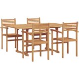 Ovaj set vanjskog namještaja savršen je za osvježavanje tvojih vanjskih prostora s elegantnim dizajnom i kvalitetnom izradom. Izrađen od čvrstog tikovog drveta, stvarno poboljšava izgled svake terase ili vrta, stvarajući ugodnu atmosferu za opuštanje ili okupljanje. Napravljen za vanjsku upotrebu, njegov prirodni finiš savršeno se uklapa u prirodu, a njegova čvrsta konstrukcija jamči pouzdanost i dugotrajnost. Bilo da organiziraš čajanku ili jednostavno uživaš u tišini, njegova prisutnost čini vanjske trenutke još ljepšima.