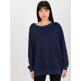 Navy blue smooth oversize hooded sweatshirt . Product code: VIBL094.03PDominant pattern: plainStyle: Casualoccasion: everyday, for work, for a walk, for the city The model is wearing one size. Model's measurements: height 167 cm, bust 73 cm, waist 64 cm, hips 91 cm. Measurements of the one size sweatshirt measured flat: armpit width 67 cm, sleeve length 58 cm, total length 74 cm.