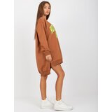 Light brown and green long sweatshirt with a . Product code: VIBL3102.01PDominant pattern: printStyle: Casualoccasion: everyday, for the city, for a walk The model is wearing one size. Model's measurements: height 163 cm, bust 86 cm, waist 56 cm, hips 88 cm. Measurements of the one size sweatshirt measured flat: armpit width 65 cm, sleeve length 58 cm, total length (front) 75 cm, total length (back) 86 cm.