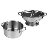Višedijelni set kuhinjskog pribora Igranje s kućicom jedna je od najpopularnijih zabava među djecom. Omogućuje stvaranje raznih, originalnih scenarija djeca mogu igrati uloge koje odaberu, za što im je potreban razni pribor koji olakšava igru. Dječje kolekcije uključuju, između ostalog, kuhinje, posuđe, pribor za jelo i namirnice. Set koji predstavljamo sastoji se od sjajnog, metalnog, srebrnog posuđa, koje uključuje, između ostalog, lonac, tave ili cjedilo. Mnoštvo elemenata omogućuje zabavu, tijekom koje se mališani mogu pretvarati da pripremaju ukusna jela, a ujedno ih i posluživati svojim roditeljima, kao i plišanim medvjedićima i lutkama. Set uključuje: cjedilo lonac tavu za roštilj tavu drvenu žlicu i vilicu rešetku za posuđe Svi proizvodi su dimenzionirani tako da odgovaraju dimenzijama malih dječjih ruku. Ovi elementi su vrlo lagani, tako da igranje neće biti problem za mališane. Boje svih elemenata seta odnose se na njihove stvarne pandanse, što će sigurno privući pažnju svakog malog kuhara. Sigurna izrada posuđa i hrane jamstvo je sigurnosti igre. Svi elementi izrađeni su od sigurnih materijala. Set je u skladu s normom EN 71. Namijenjen je djeci starijoj od 3 godine. Set kuhinjskog pribora postavljen je na stalak namijenjen njima. Dimenzije odabranih elemenata seta: cjedilo: 5,5 cm x 16 cm lonac: 5,5 cm x 16 cm tava: 5,5 cm x 20 cm Visina postolja: 33 cm Dimenzije pakiranja: 16 x 16 x 33 cm