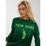 Dark green and green long oversize sweatshirt with an inscription . Product code: VIBL3212.15XDominant pattern: printStyle: Casualoccasion: casual, for a walk, for the city The model is wearing one size. Model's measurements: height 175 cm, bust 84 cm, waist 62 cm, hips 93 cm. Measurements of the one size sweatshirt measured flat: armpit width 67 cm, sleeve length 55 cm, total length 84 cm.