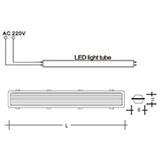 Proizvod ne uključuje LED cijev. Kućište ja namjenjeno isključivo LED cijevima sa priključnim kontaktima na jednoj strani. Vodotijesno kučište jednostruko za LED cijev T8 18W 120 cm Zaštita: IP65 Dužina cijevi (L): 1200 mm Napon: AC 220240V Materijal: Aluminij/Termoplastika Dimenzije: (DxŠxV) 1270x81x93 mm