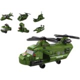 Veliki zeleni vojni helikopter središnji je element ovog impresivnog skupa blokova koji se sastoji od čak 1000 elemenata. Njegova veličina i impresivni detalji čine ga ne samo fascinantnim modelom za sklapanje, već i izvrsnim ukrasom za sobu svakog ljubitelja vojnih strojeva.Ovaj set pravi je građevinski izazov. Svaki je element pažljivo dizajniran kako bi se osigurala najveća moguća autentičnost i realističnost konačnog dizajniranog proizvoda. Kako bi se olakšao proces izrade, uključene su detaljne slikovne upute koje vas vode korak po korak kroz cijeli proces sastavljanja. Zahvaljujući njemu, čak i dizajneri početnici moći će uživati u uspjehu kada dovrše vlastiti helikopter i druge vojne strojeve.Uz glavni helikopter, ovaj set također nudi mogućnost izgradnje šest drugih manjih vojnih strojeva. Svaki od ovih strojeva zaseban je, izražajan element koji dodaje još više uzbuđenja zabavi. Brod, lovac, katapult, podmornica, kamion i manji helikopter to je bogatstvo mogućnosti koje vam omogućuju da rekreirate dinamične scene vojne akcije.Set također uključuje naljepnice koje složenim strukturama dodaju još više realizma. Ovi mali detalji ključni su za postizanje autentičnog izgleda svakog vojnog stroja.Ovaj set ne samo da pruža sate zabave sastavljanja, već također otvara vrata beskrajnim avanturama i kreativnim vojnim scenarijima. Ovo je savršen poklon za sve koji su strastveni prema vojnim strojevima, graditeljstvu i razvijanju mašte kroz igru.Veličina paketa:28 cm x 27,5 cm x 6 cmIma CE certifikat i u skladu je sa standardom EN71. Namijenjeno djeci starijoj od 6 godina.