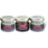 Voštana pasta chamelen 20 ml Pasta marke Pentart napravljena od pčelinjeg voska I ulja od narandže. Na tamnoj podlozi će napraviti odličan presijavajući efekat. Upotreba: pastu nanosite u tankim slojevima na predmet koji je već premazan podlogom. Nanosite ravnomerno. Ukupno vreme sušenja paste zavisi od predmeta na koji se nanosi ali prosečno je to 3 sata. Voštanu pastu Vam nudimo u 6 nijansi. Zapremina: 20 ml.