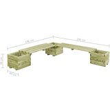 Ova praktična vrtna klupa sa sadilicama dodat će dašak prirodnog šarma vašem vrtu, terasi ili dvorištu. Izrađena od visokokvalitetne zeleno impregnirane borovine, naša vrtna klupa vrlo je čvrsta, izdržljiva i otporna na vremenske utjecaje. Kutije za sadnju pružaju dovoljno prostora za uzgoj lijepog cvijeća. Vrtna klupa sa sadilicama lako se sastavlja. Imajte na umu da je drvo prirodni proizvod i može sadržavati nesavršenosti.