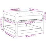 Ovaj drveni vrtni tabure s jastukom bit će odličan dodatak vašem vrtu, terasi ili trijemu za razgovor s obitelji i prijateljima ili jednostavno uživanje u lijepom vremenu. Masivna borovina: Masivna borovina prekrasan je prirodni materijal. Borovina ima ravne godove, a čvorovi daju materijalu njegov prepoznatljivi, rustični izgled. Napravljen od masivne borovine, ovaj vanjski tabure izdržljiv je i stabilan.Udobno sjedenje: Debelo postavljeni jastuci čine vrtni otoman udobnijim za sjedenje.Višenamjenska upotreba: Ovaj vanjski otoman može se upotrebljavati za sjedenje ili opuštanje nogu, ali i kao stolić za kavu za držanje pića, hrane i drugih ukrasa.Rešetkasti dizajn: Rešetkasti dizajn vrtnog otomana sprječava nakupljanje vode, održavajući sjedalo suhim i sprječavajući moguće truljenje.Modularni dizajn: Ovaj otoman za terasu ima modularni dizajn, zbog čega je potpuno fleksibilan i lagan za pomicanje kako bi odgovarao svakom okruženju. Možete ga kombinirati s drugim modularnim segmentima dostupnima u padajućem izborniku kako biste napravili vlastiti raspored vrtne garniture! Dobro je znati:Kako bi vaš vanjski namještaj ostao lijep, preporučujemo da ga zaštitite vodootpornom navlakom.