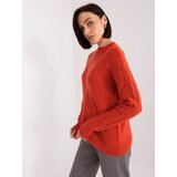 Dark orange sweater with braids and round neckline. Product code: ATSW2340.43Dominant pattern: no patternStyle: Casualoccasion: everyday, for the city, for a walk The model is wearing one size. Model's measurements: height 178 cm, bust 90 cm, waist 62 cm, hips 94 cm. Measurements of the one size sweater measured flat: armpit width 64 cm, sleeve length 65 cm, total length 67 cm.