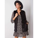 Black faux fur vest. accessories: pockets, lining, hookandeye closureMaterial: 100% polyesterwashing method: machine wash at 30CThe model is wearing a size S. Model's measurements: height 176 cm, bust 85 cm, waist 64 cm, hips 92 cm. Dimensions of the vest in size S measured flat: width under the armpits 47 cm, total length 71 cm