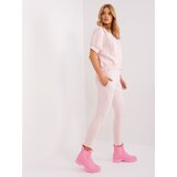 The model is wearing one size. Model's measurements: height 175 cm, bust 90 cm, waist 66 cm, hips 94 cm.Dimensions of the set in one size measured flat: width of the sweatshirt under the armpits 72 cm, length of the sweatshirt 56 cm, width of the pants at the waist 38 cm, waist height 34 cm, length of the pants 97 cm.