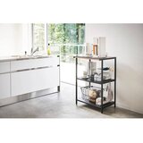 Elegantna polica Tower brenda YAMAZAKI nudi pametno i prostrano rješenje za organiziranje raznih kućanskih predmeta. Tri police pružaju dovoljno prostora za glomazne kuhinjske aparate poput mikrovalnih pećnica ili tostera. Tu je i pet zasebnih kuka za vješanje drugih stvari. Maksimalna nosivost jedne police je 8 kg, šipke 3 kg, a kuke 0,5 kg.